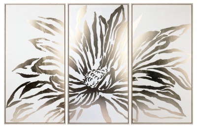 - Интерьерное панно - триптих. Размер каждого панно - 120х60см. Качественный принт на матовом холсте, декорирование золотой фольгой, подрамник из массива дерева, объемная рама дубового цвета.